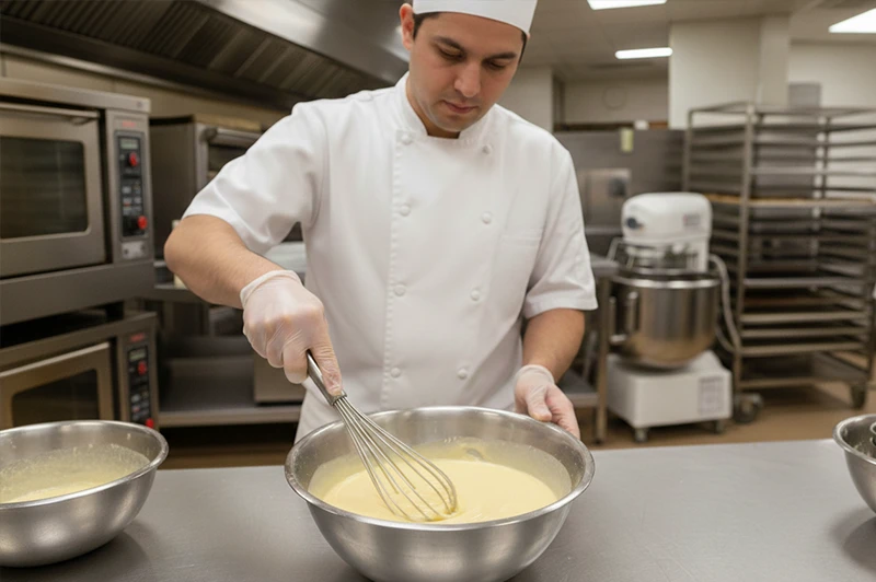 Preparing custard powder in a commercial kitchen is simple and efficient, making it ideal for high-volume operations.